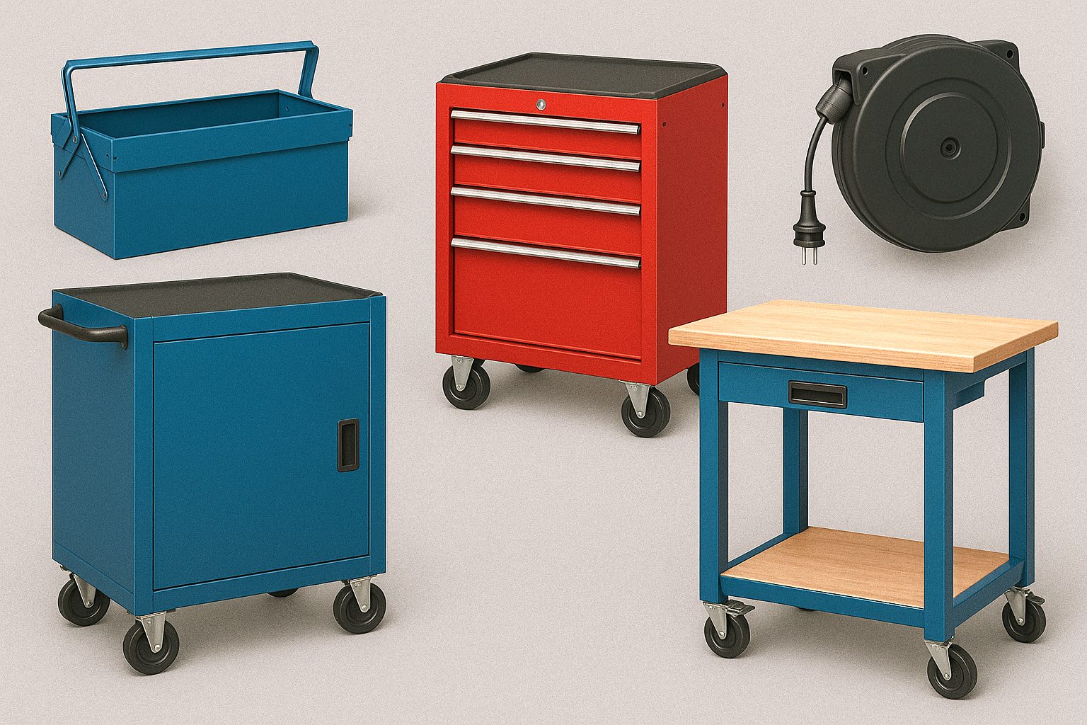 • Equipements de rangement d’outils : caisses à outils, sacs de rangement, servantes